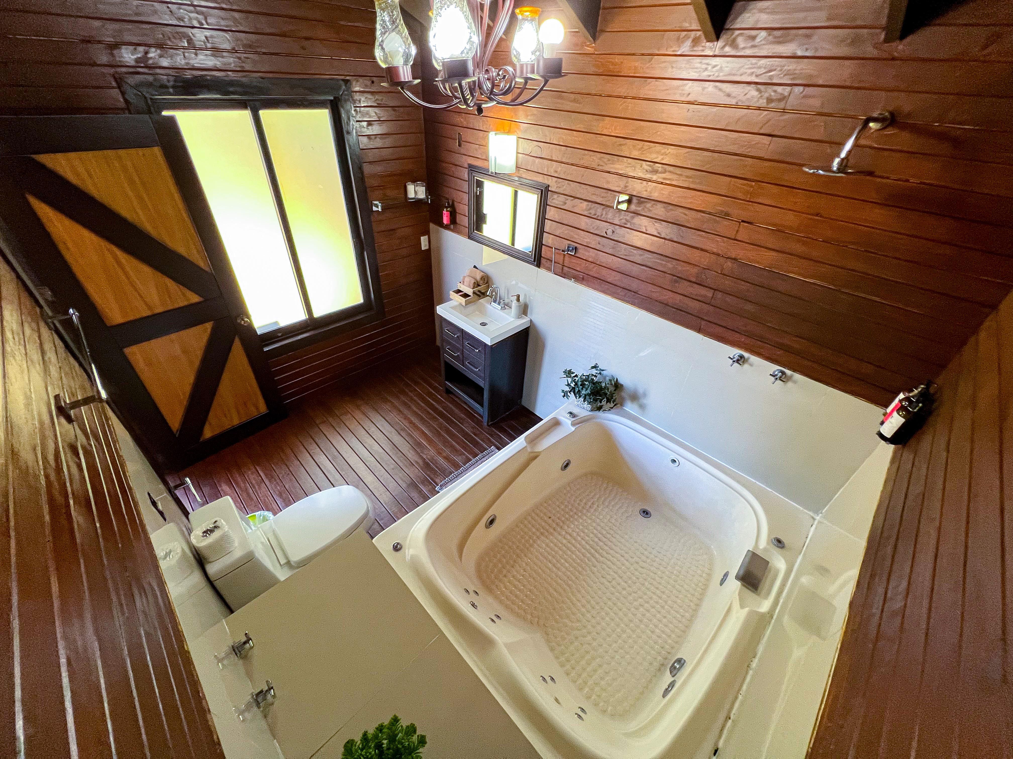 En todas nuestras cabañas de pareja podrás disfrutar y relajarte en un Jacuzzi con hidromasaje.